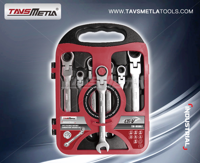 Flexible Ratchet Combination Wrench Set NO.:TM-M0607 Clicks : 194 8,10,12,13,14,17,19 mm NO. QTY./CARTON TM-M0607 2/16