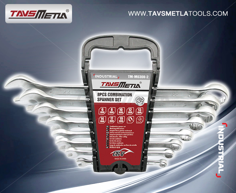Combination Spanner Set NO.:TM-M0308-2 Clicks : 270 6,8,10,12,13,14,17,19 mm NO. QTY./CARTON TM-M0308-2 4/24