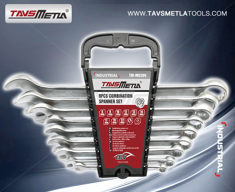 Combination Spanner Set NO.:TM-M0309 Clicks : 225 6,8,10,12,13,14,17,19,22 mm NO. QTY./CARTON TM-M0309 4/16