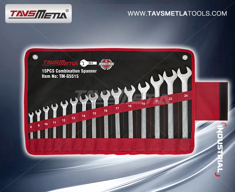 Combination Spanner Set NO.:TM-G5515 Clicks : 200 8,9,10,11,12,13,14,15,16,17,18,19,21,22,24 mm NO. QTY./CARTON TM-G5515 1/6